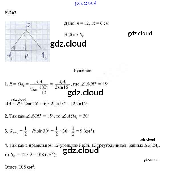 Ответ на задание 262 Учебник Геометрия за 9 (девятый) класс Казаков 2019 онлайн и без номера телефона.