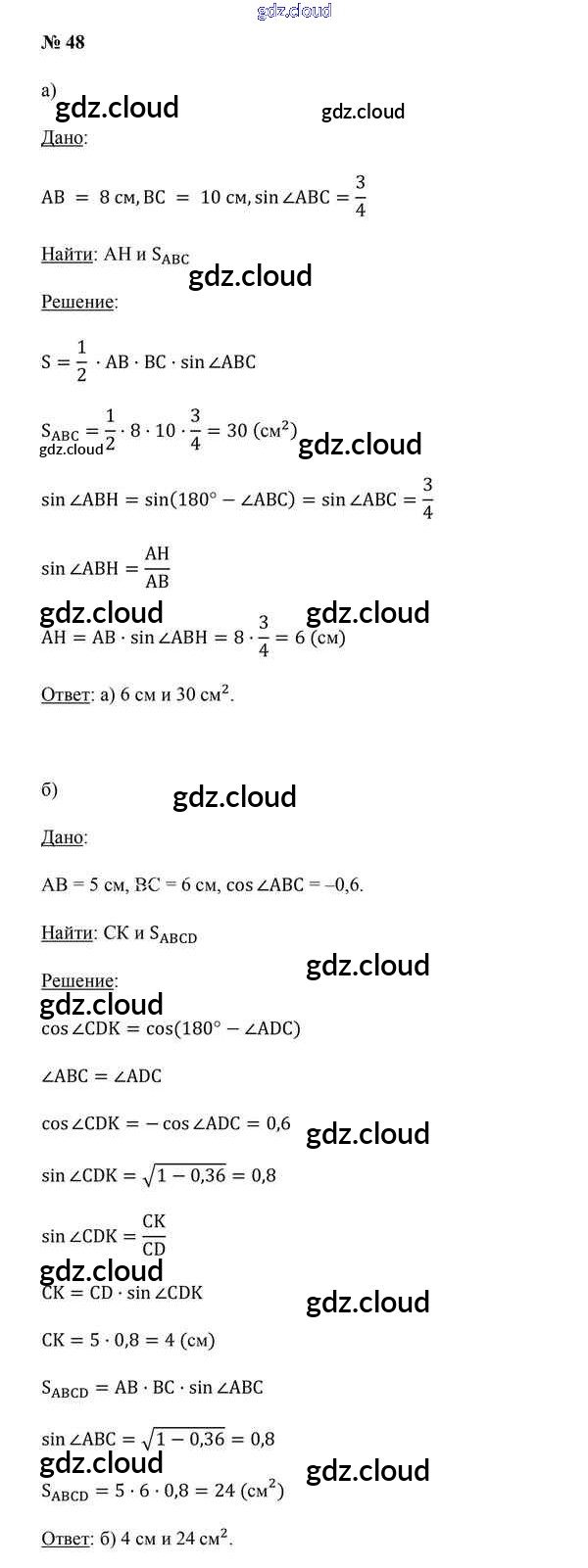 Ответ на задание 48 Учебник Геометрия за 9 (девятый) класс Казаков 2019 онлайн и без номера телефона.