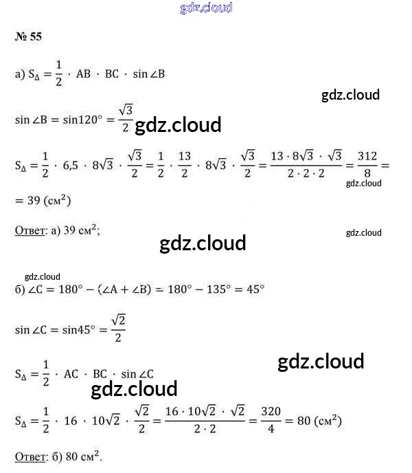 Ответ на задание 55 Учебник Геометрия за 9 (девятый) класс Казаков 2019 онлайн и без номера телефона.