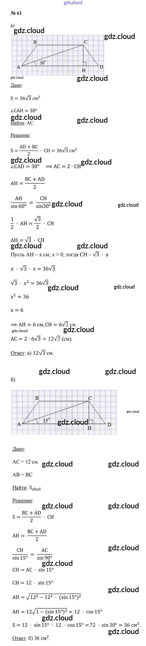 Ответ на задание 61 Учебник Геометрия за 9 (девятый) класс Казаков 2019 онлайн и без номера телефона.
