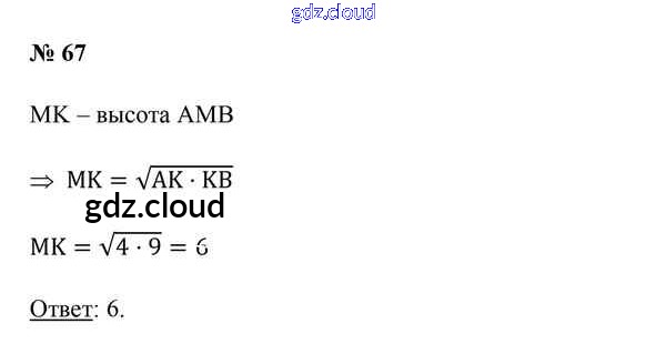 Ответ на задание 67 Учебник Геометрия за 9 (девятый) класс Казаков 2019 онлайн и без номера телефона.
