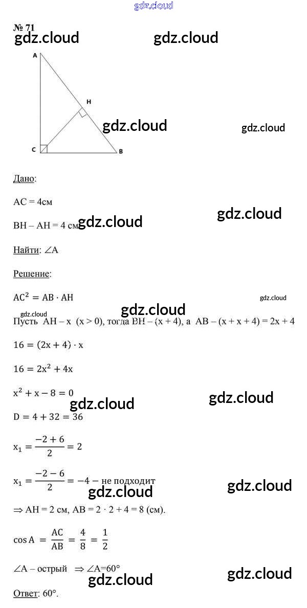 Ответ на задание 71 Учебник Геометрия за 9 (девятый) класс Казаков 2019 онлайн и без номера телефона.