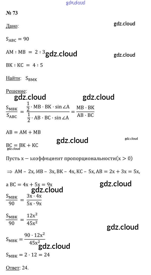 Ответ на задание 73 Учебник Геометрия за 9 (девятый) класс Казаков 2019 онлайн и без номера телефона.