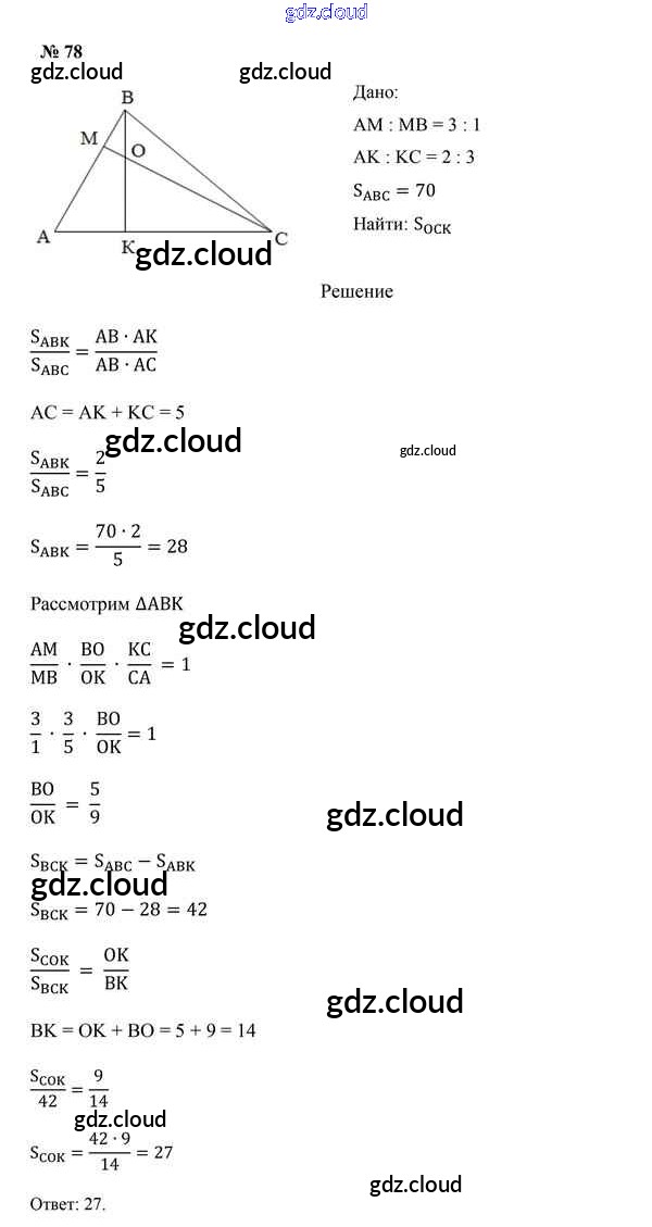 Ответ на задание 78 Учебник Геометрия за 9 (девятый) класс Казаков 2019 онлайн и без номера телефона.