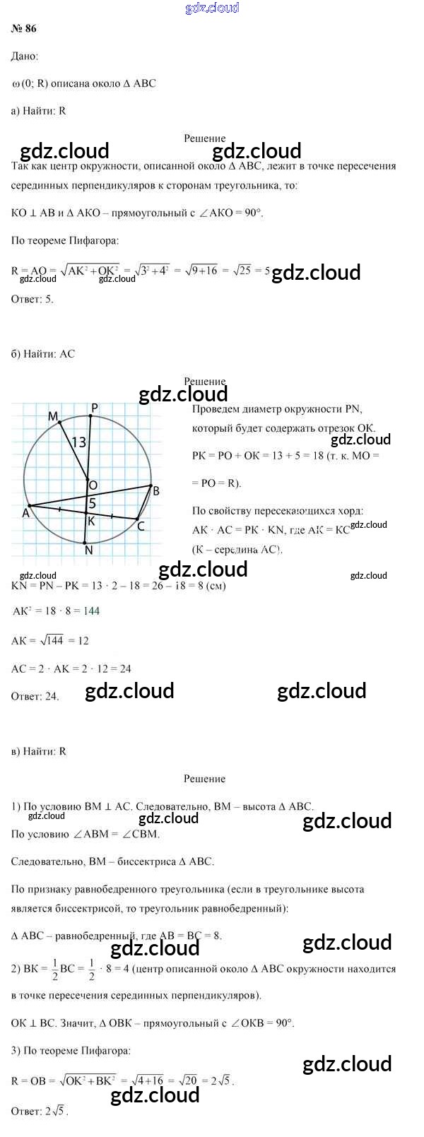 Ответ на задание 86 Учебник Геометрия за 9 (девятый) класс Казаков 2019 онлайн и без номера телефона.