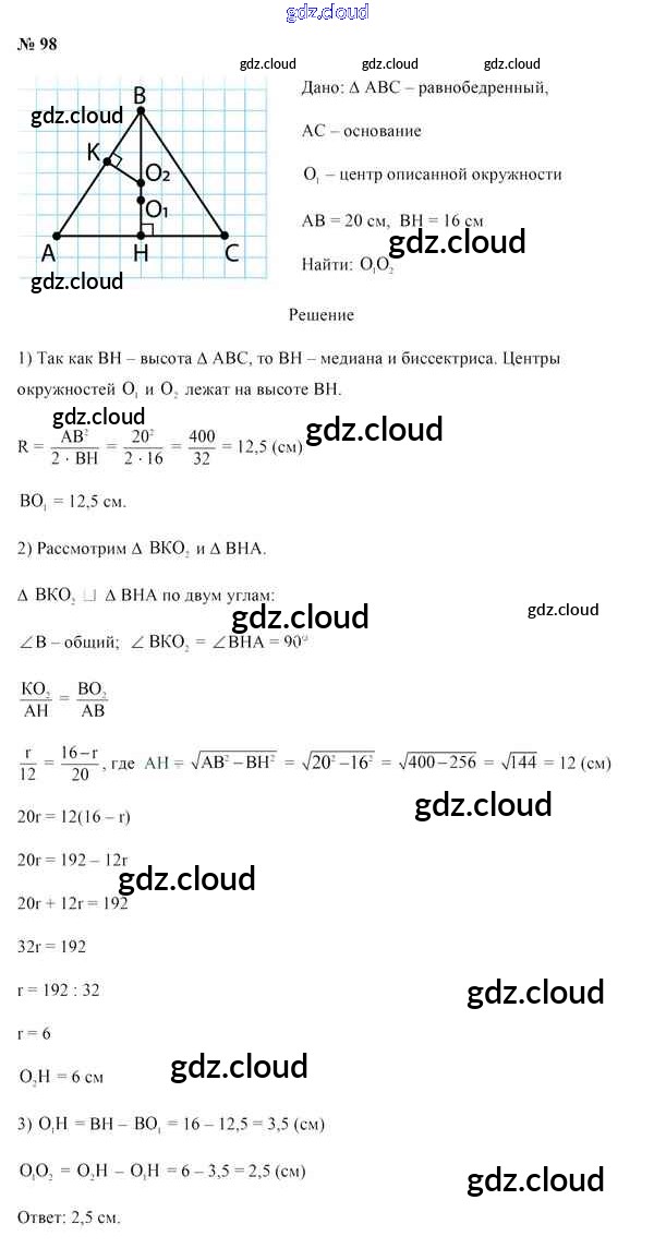 Ответ на задание 98 Учебник Геометрия за 9 (девятый) класс Казаков 2019 онлайн и без номера телефона.