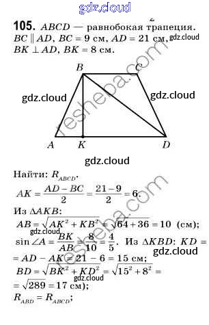 Ответ на задание 105 Учебник Геометрия за 9 (девятый) класс Мерзляк, Полонский, Якир 2016, 2023