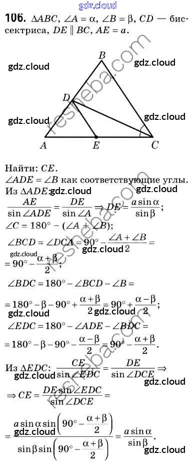 Ответ на задание 106 Учебник Геометрия за 9 (девятый) класс Мерзляк, Полонский, Якир 2016, 2023