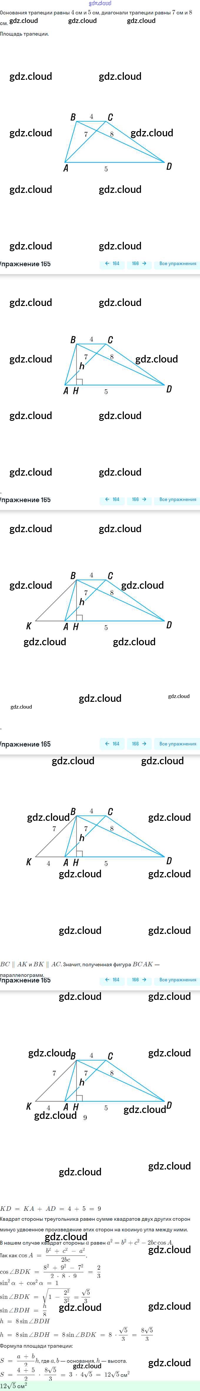 Ответ на задание 165 Учебник Геометрия за 9 (девятый) класс Мерзляк, Полонский, Якир 2016, 2023