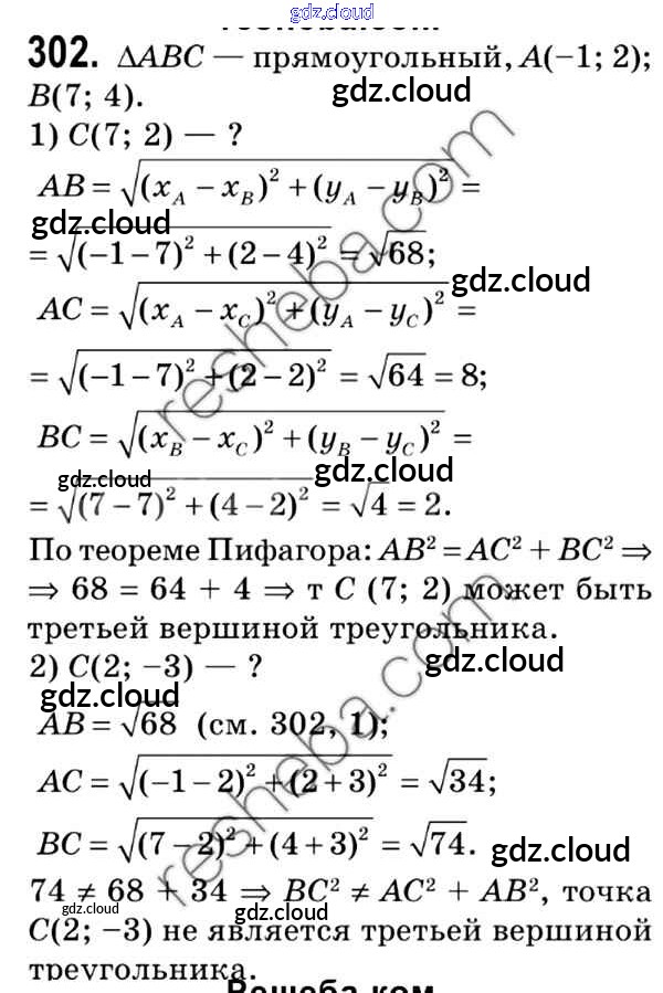 Ответ на задание 302 Учебник Геометрия за 9 (девятый) класс Мерзляк, Полонский, Якир 2016, 2023