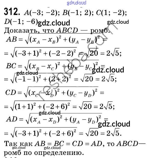 Ответ на задание 312 Учебник Геометрия за 9 (девятый) класс Мерзляк, Полонский, Якир 2016, 2023