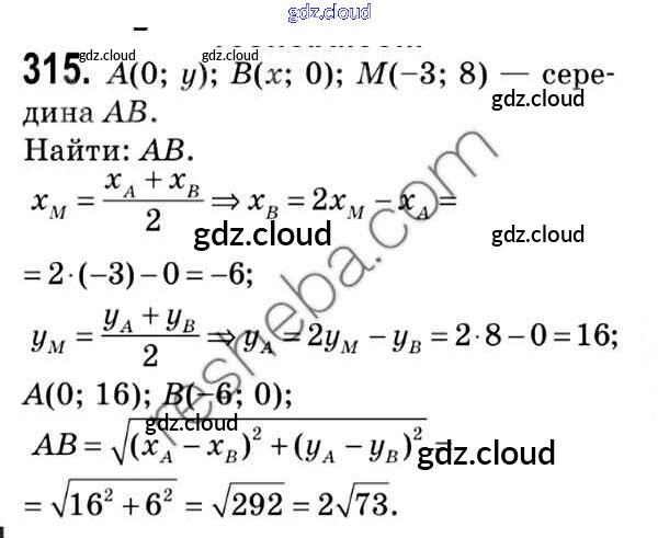 Ответ на задание 315 Учебник Геометрия за 9 (девятый) класс Мерзляк, Полонский, Якир 2016, 2023