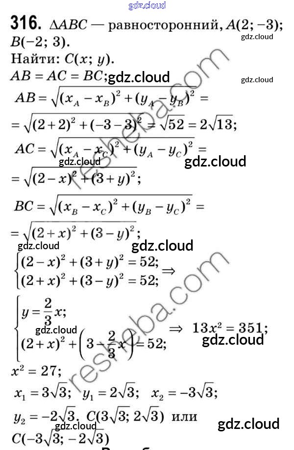 Ответ на задание 316 Учебник Геометрия за 9 (девятый) класс Мерзляк, Полонский, Якир 2016, 2023