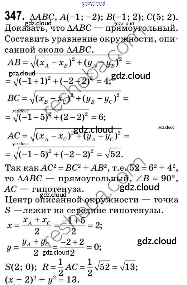 Ответ на задание 347 Учебник Геометрия за 9 (девятый) класс Мерзляк, Полонский, Якир 2016, 2023