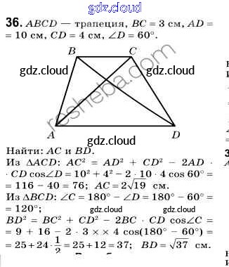 Ответ на задание 36 Учебник Геометрия за 9 (девятый) класс Мерзляк, Полонский, Якир 2016, 2023 ФГОС онлайн и без номера телефона.