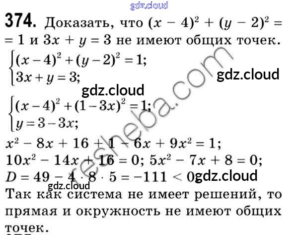 Ответ на задание 374 Учебник Геометрия за 9 (девятый) класс Мерзляк, Полонский, Якир 2016, 2023