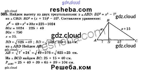 Ответ на задание 385 Учебник Геометрия за 9 (девятый) класс Мерзляк, Полонский, Якир 2016, 2023