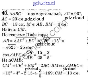 Ответ на задание 40 Учебник Геометрия за 9 (девятый) класс Мерзляк, Полонский, Якир 2016, 2023