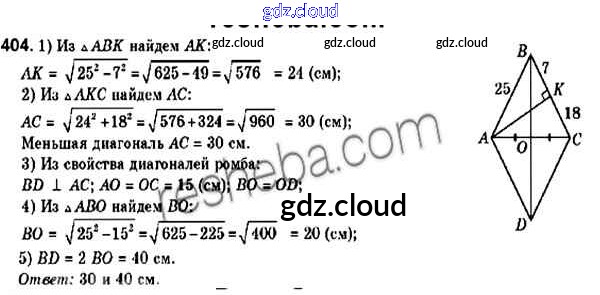 Ответ на задание 404 Учебник Геометрия за 9 (девятый) класс Мерзляк, Полонский, Якир 2016, 2023