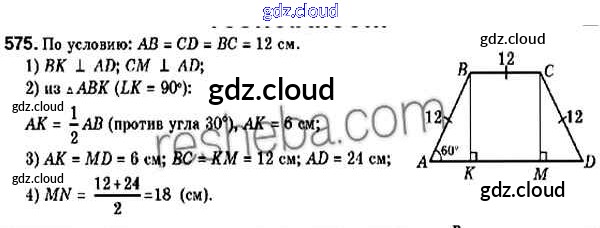 Ответ на задание 575 Учебник Геометрия за 9 (девятый) класс Мерзляк, Полонский, Якир 2016, 2023