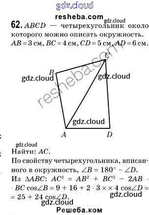 Ответ на задание 62 Учебник Геометрия за 9 (девятый) класс Мерзляк, Полонский, Якир 2016, 2023