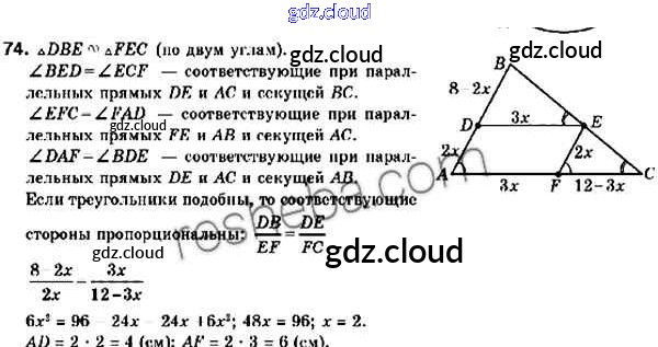 Ответ на задание 74 Учебник Геометрия за 9 (девятый) класс Мерзляк, Полонский, Якир 2016, 2023