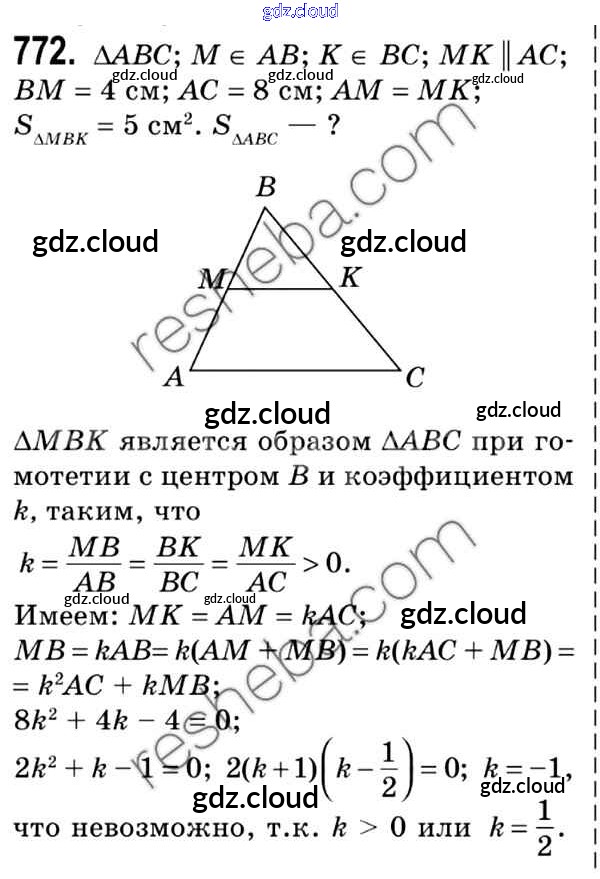 Ответ на задание 772 Учебник Геометрия за 9 (девятый) класс Мерзляк, Полонский, Якир 2016, 2023