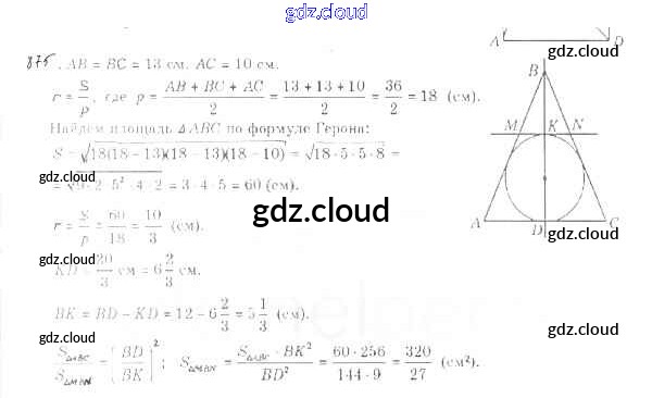 Ответ на задание 875 Учебник Геометрия за 9 (девятый) класс Мерзляк, Полонский, Якир 2016, 2023