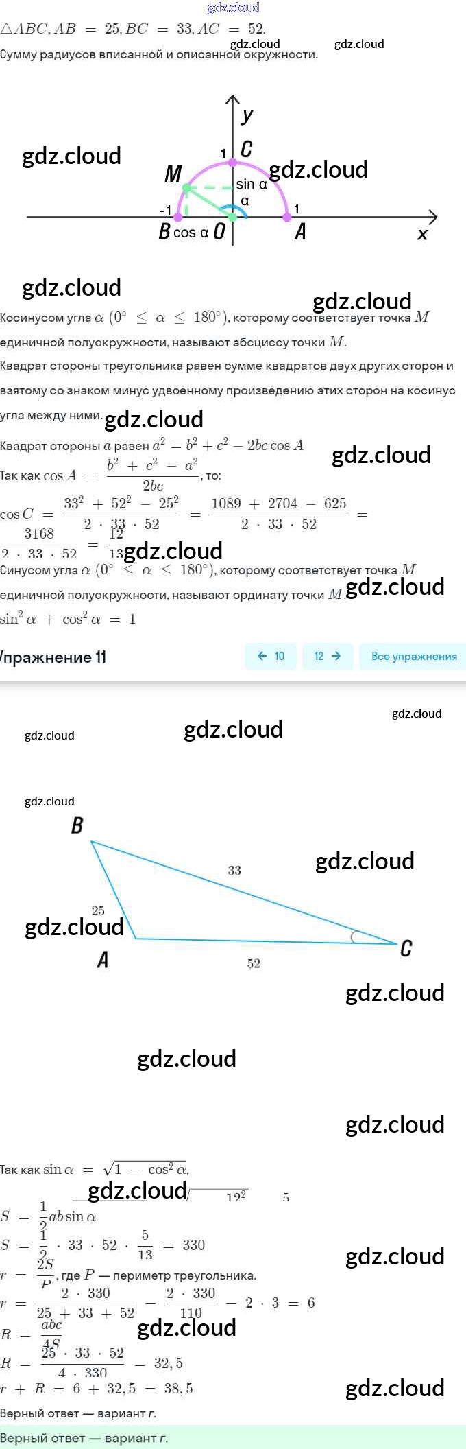 Ответ на задание 11 Учебник Геометрия за 9 (девятый) класс Мерзляк, Полонский, Якир 2016, 2023