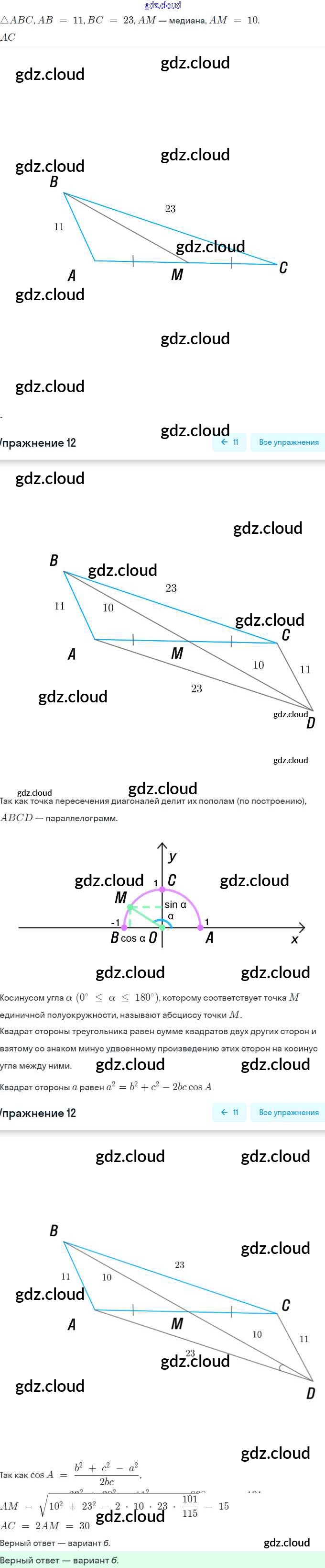 Ответ на задание 12 Учебник Геометрия за 9 (девятый) класс Мерзляк, Полонский, Якир 2016, 2023