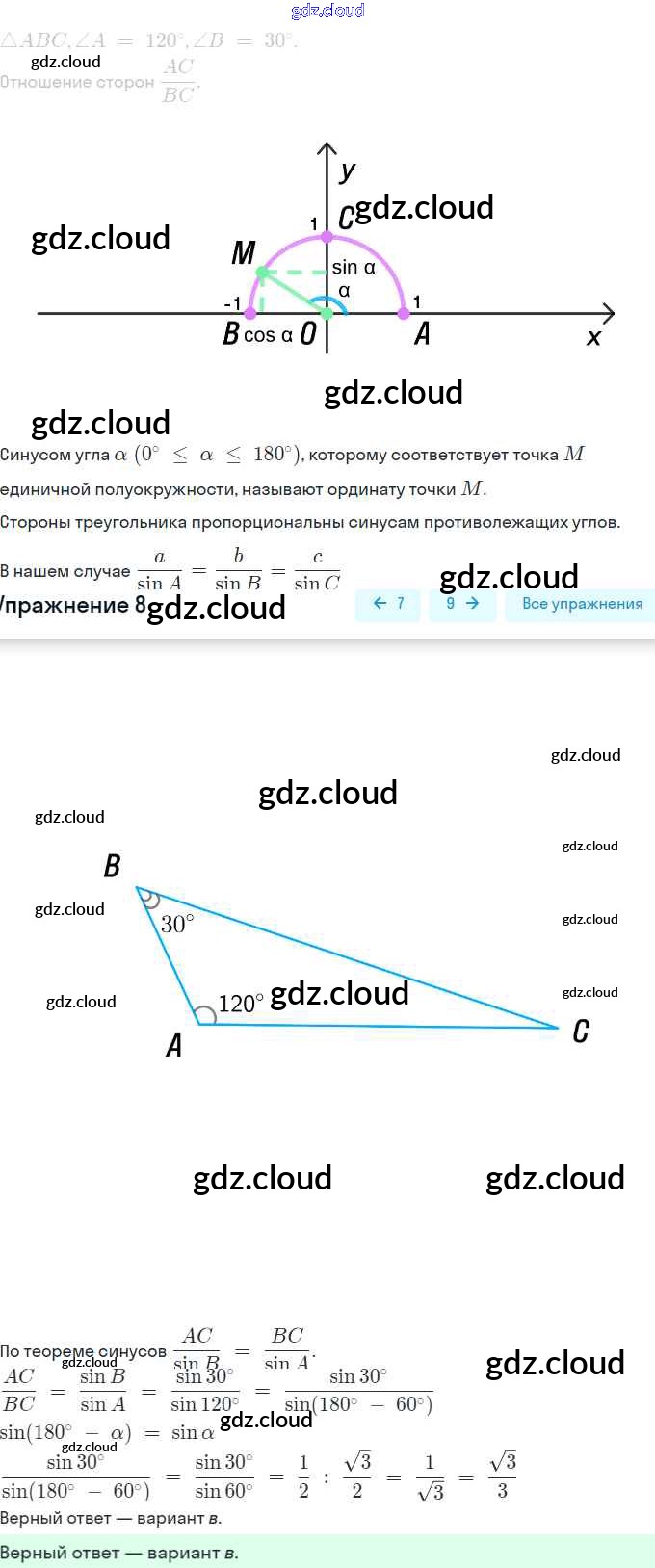 Ответ на задание 8 Учебник Геометрия за 9 (девятый) класс Мерзляк, Полонский, Якир 2016, 2023