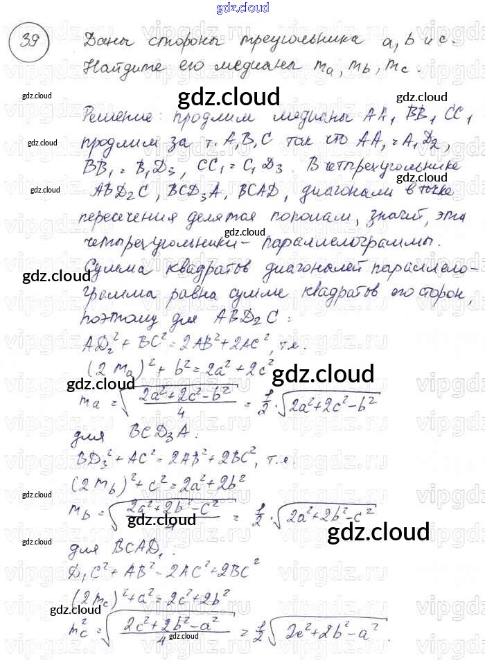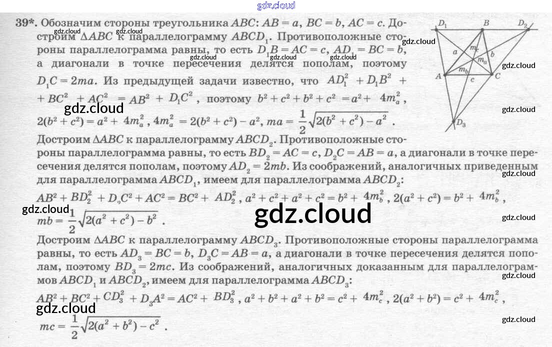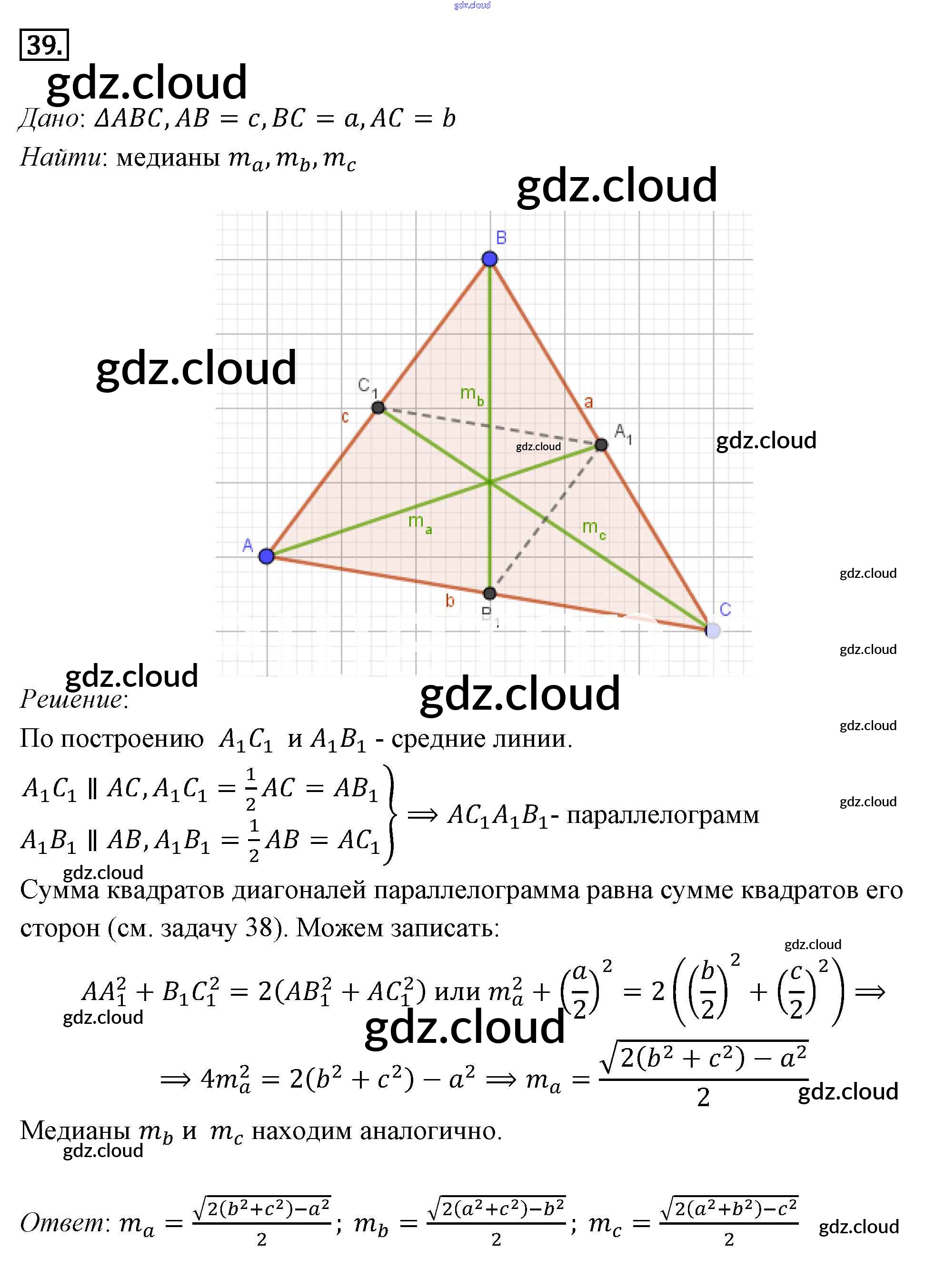 Ответ на задание 39 Учебник Геометрия за 7, 8, 9 (седьмой, восьмой, девятый) класс Погорелов 2014