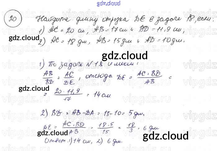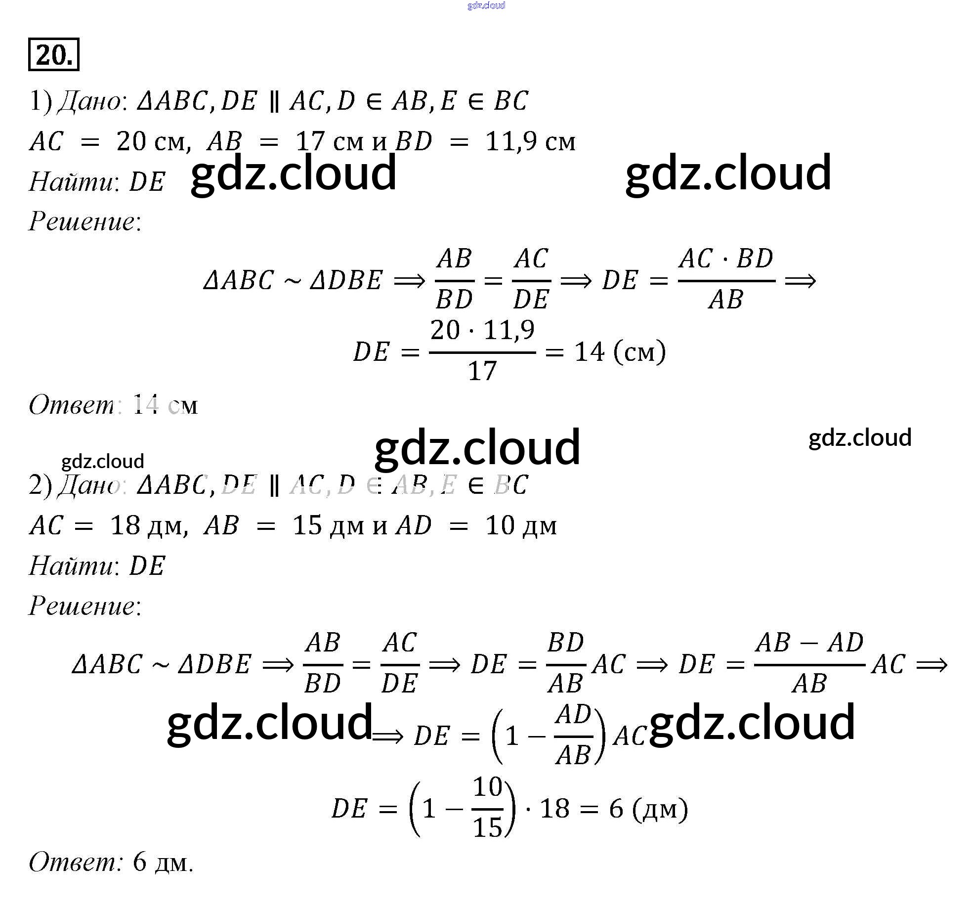 Ответ на задание 20 Учебник Геометрия за 7, 8, 9 (седьмой, восьмой, девятый) класс Погорелов 2014