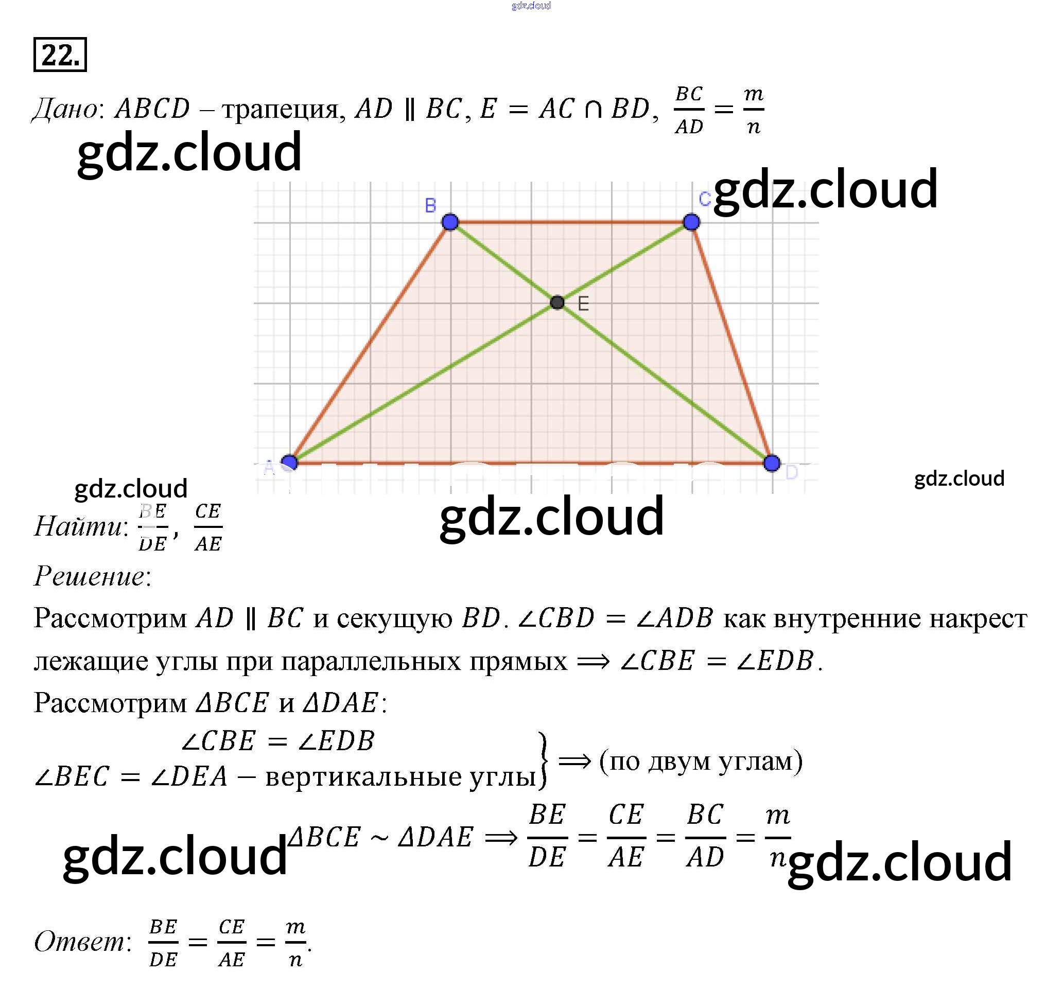 Ответ на задание 22 Учебник Геометрия за 7, 8, 9 (седьмой, восьмой, девятый) класс Погорелов 2014
