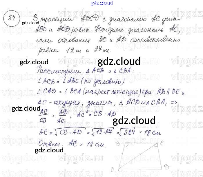 Ответ на задание 24 Учебник Геометрия за 7, 8, 9 (седьмой, восьмой, девятый) класс Погорелов 2014