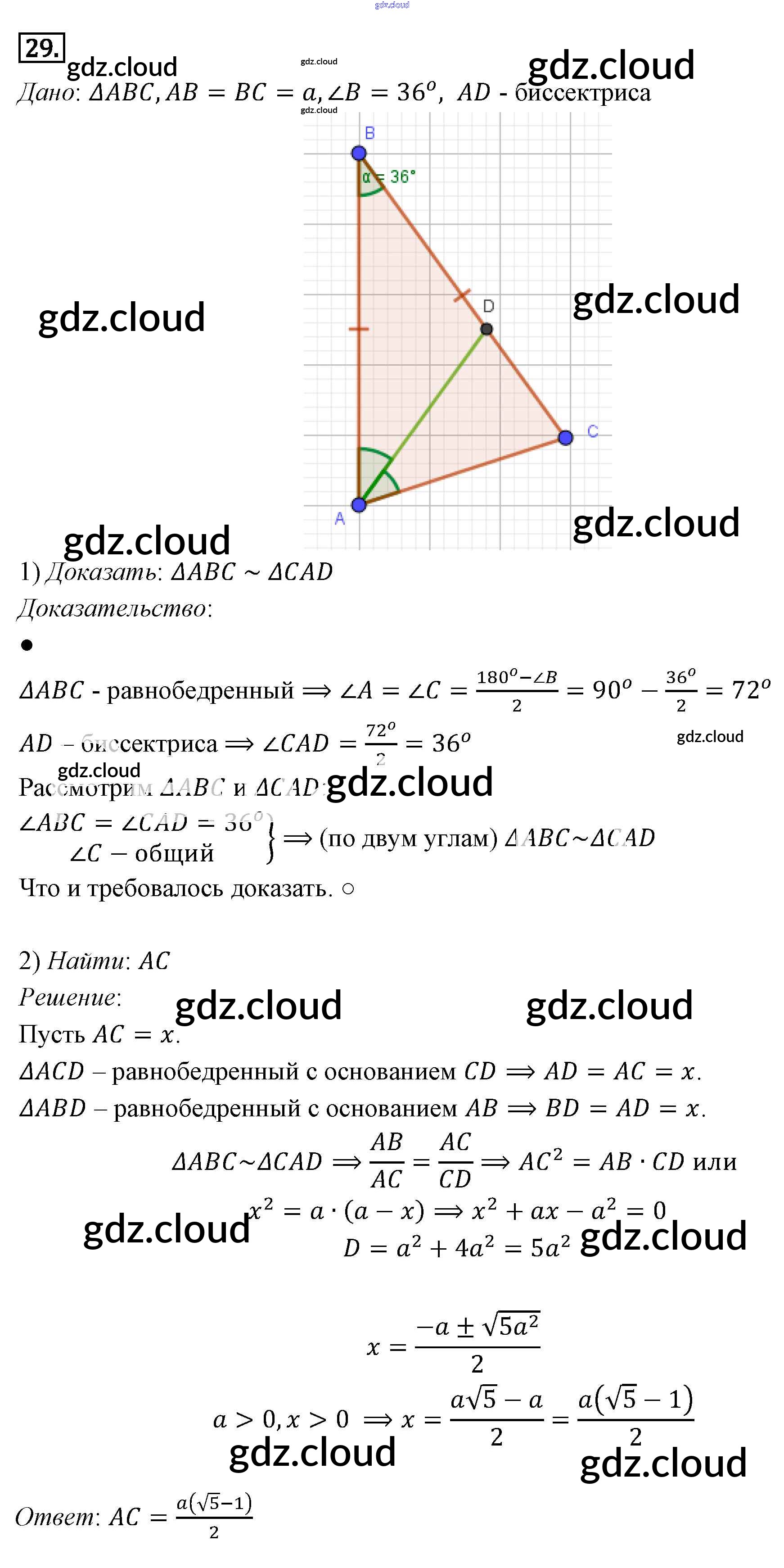 Ответ на задание 29 Учебник Геометрия за 7, 8, 9 (седьмой, восьмой, девятый) класс Погорелов 2014