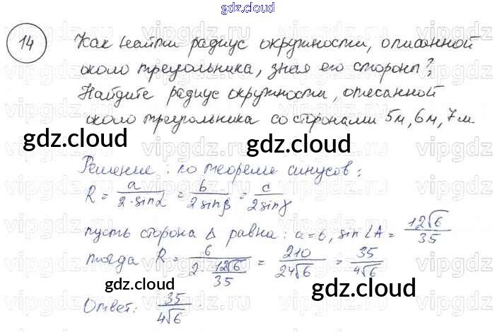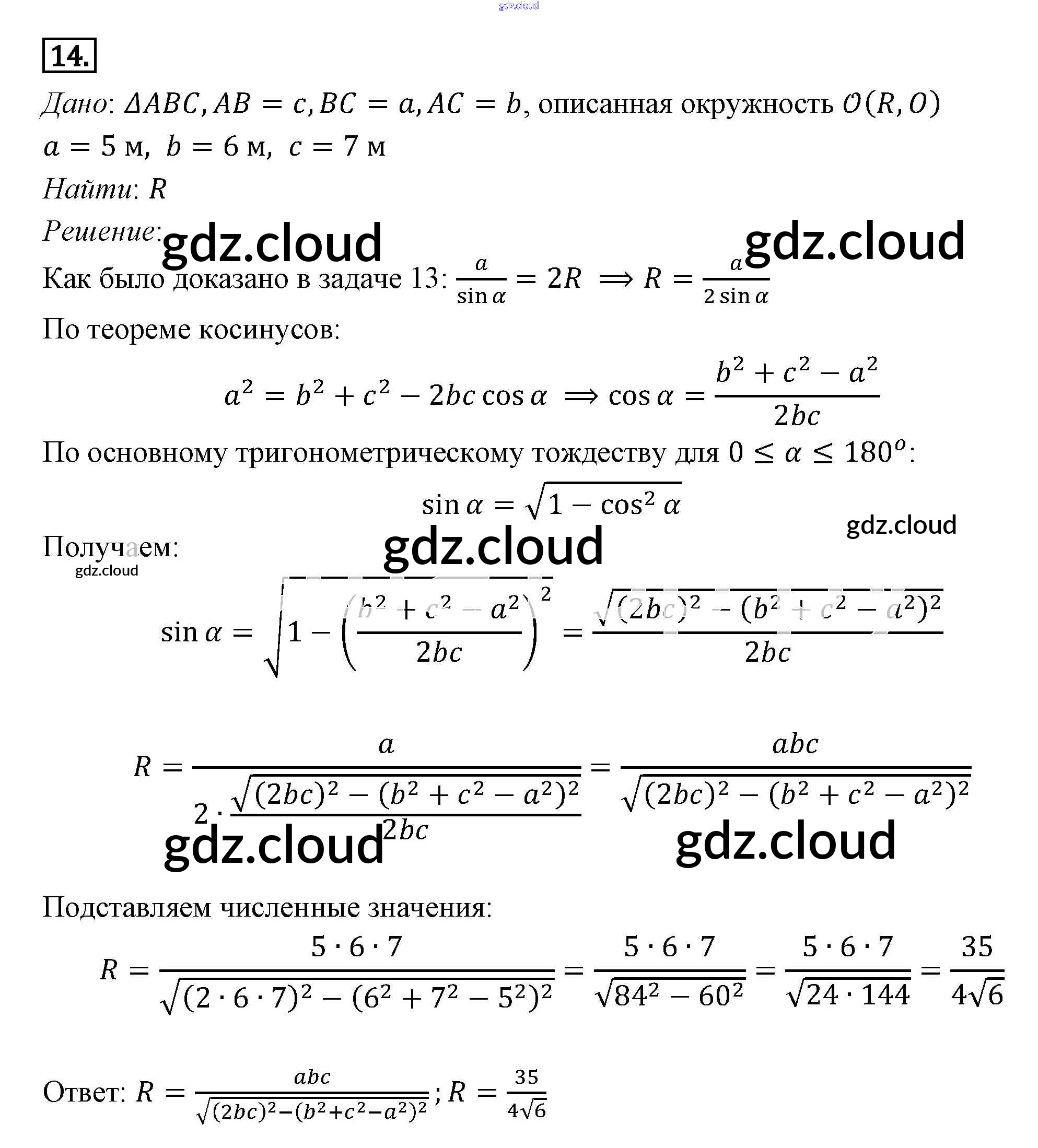 Ответ на задание 14 Учебник Геометрия за 7, 8, 9 (седьмой, восьмой, девятый) класс Погорелов 2014