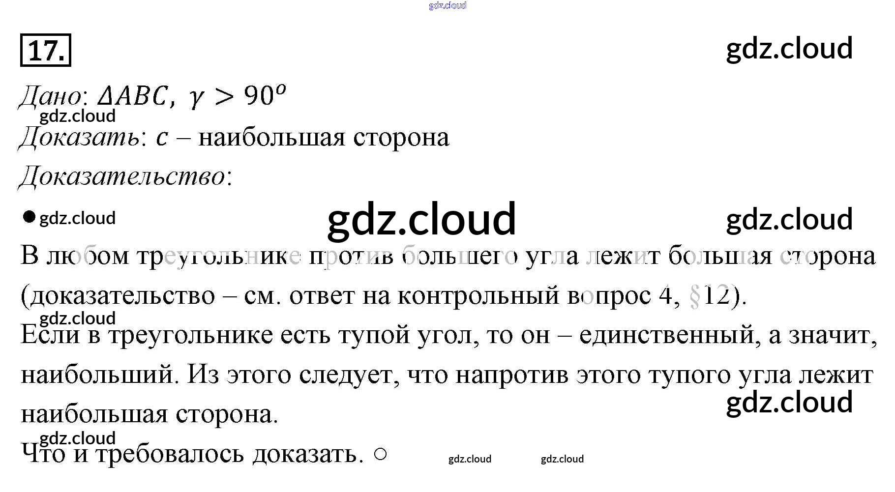 Ответ на задание 17 Учебник Геометрия за 7, 8, 9 (седьмой, восьмой, девятый) класс Погорелов 2014