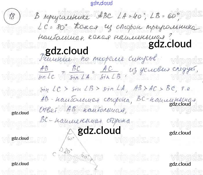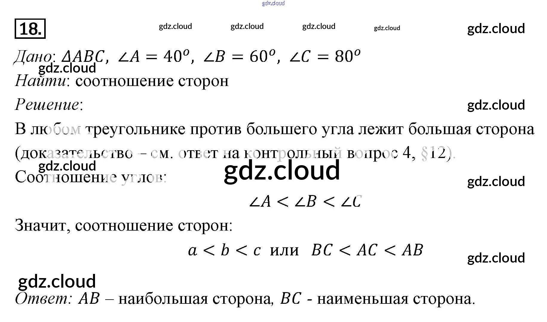 Ответ на задание 18 Учебник Геометрия за 7, 8, 9 (седьмой, восьмой, девятый) класс Погорелов 2014
