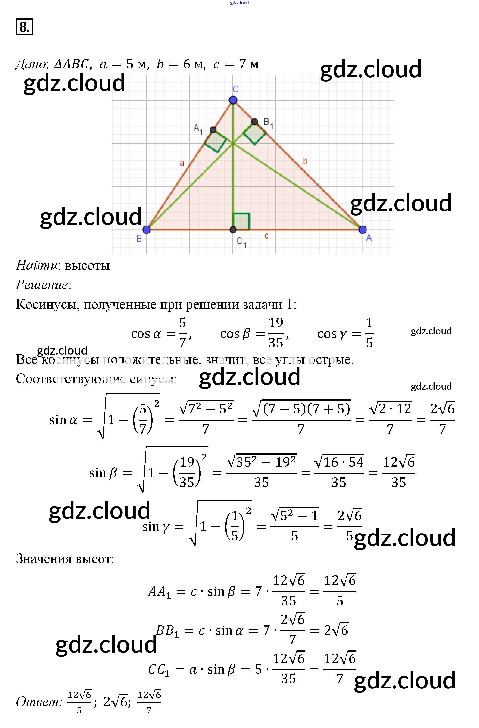 Ответы к §12. Решение треугольников по Геометрии 7, 8, 9 класс Учебник Погорелов Просвещение