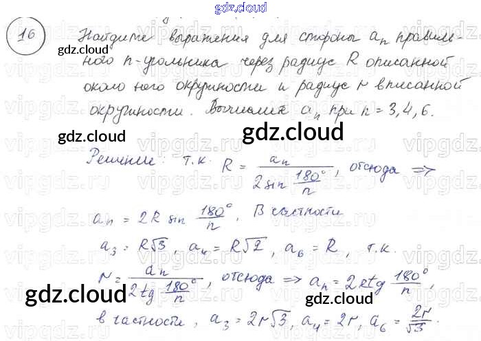 Ответ на задание 16 Учебник Геометрия за 7, 8, 9 (седьмой, восьмой, девятый) класс Погорелов 2014