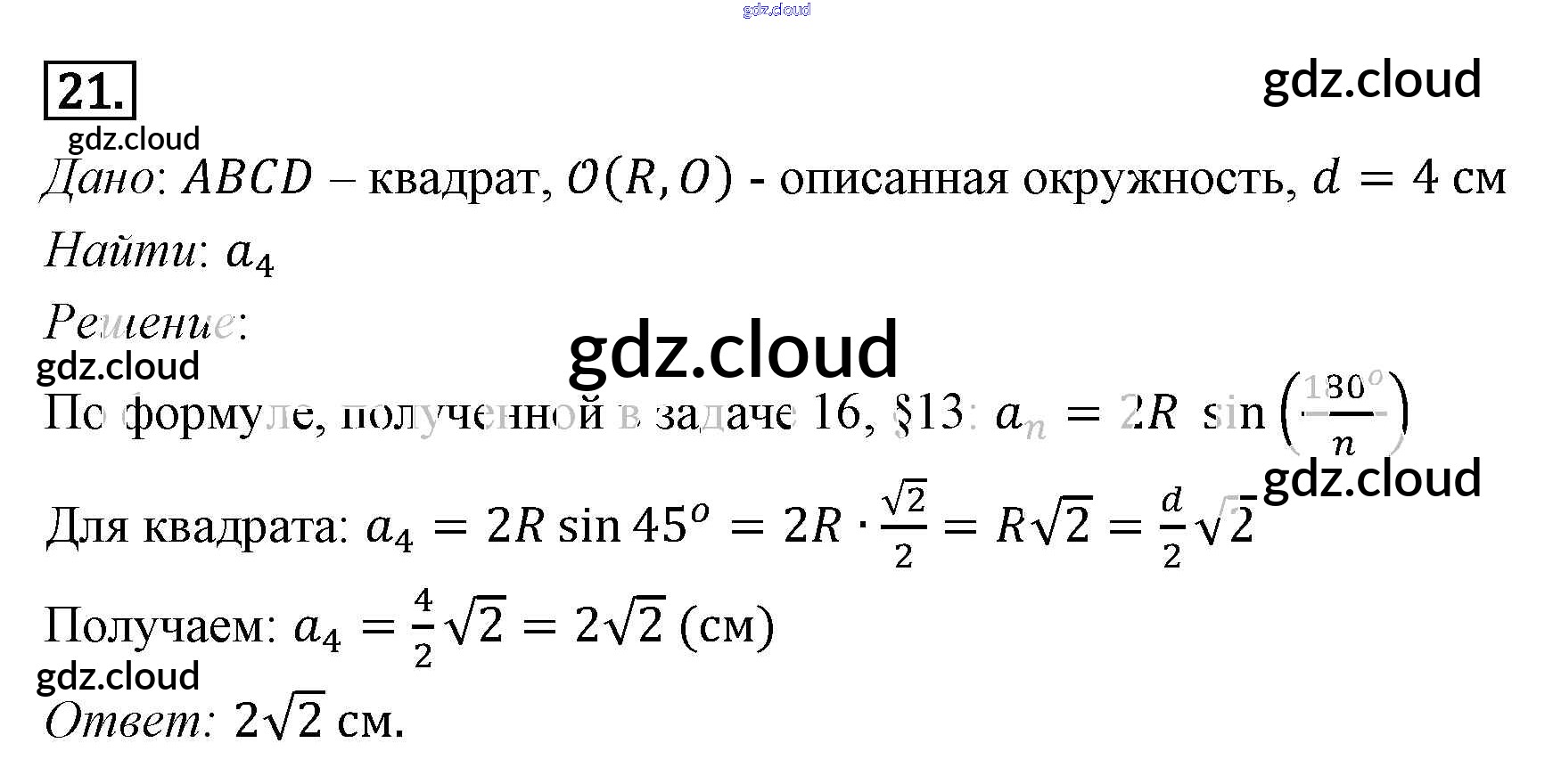 Ответ на задание 21 Учебник Геометрия за 7, 8, 9 (седьмой, восьмой, девятый) класс Погорелов 2014