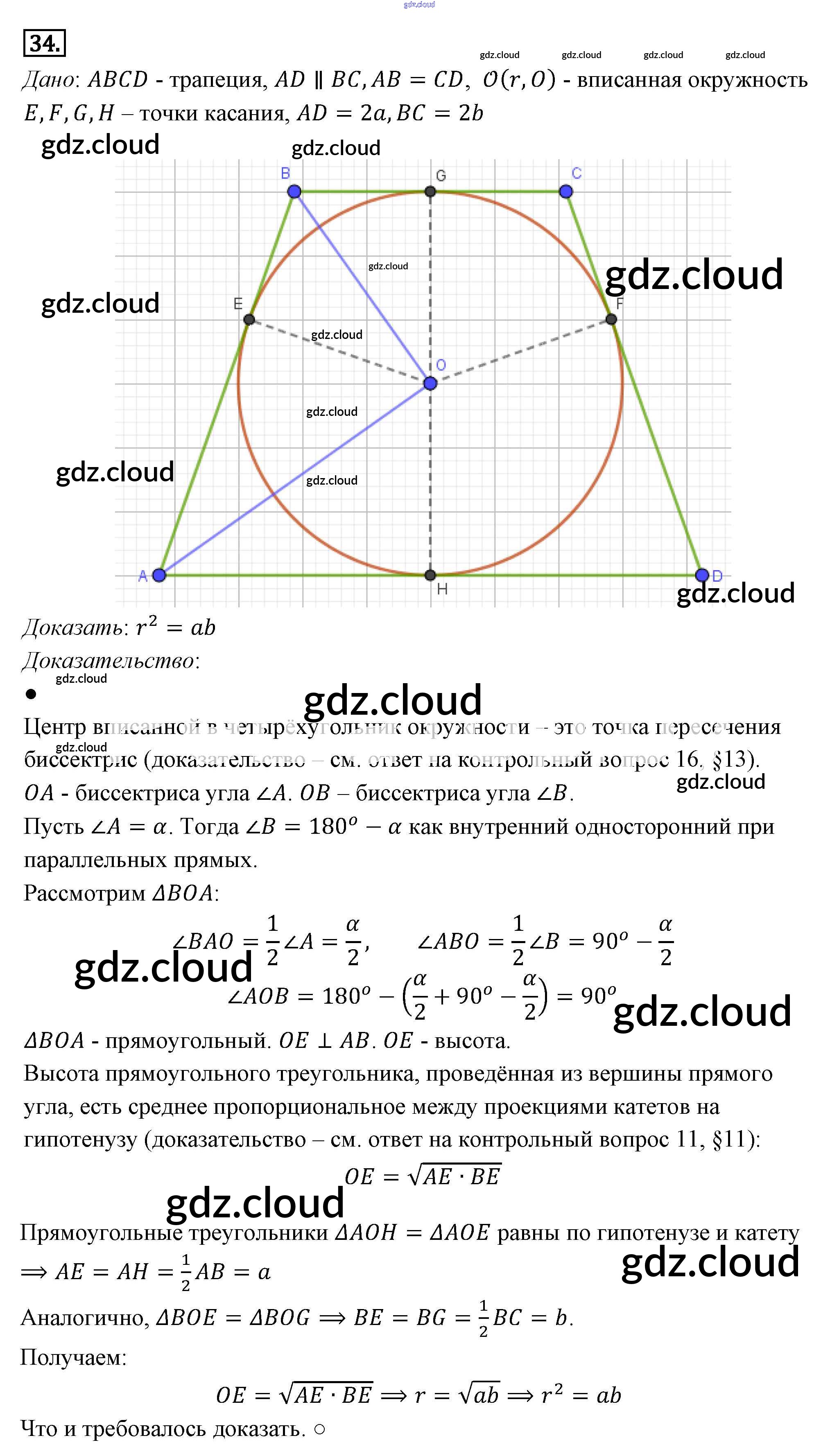 Ответ на задание 34 Учебник Геометрия за 7, 8, 9 (седьмой, восьмой, девятый) класс Погорелов 2014