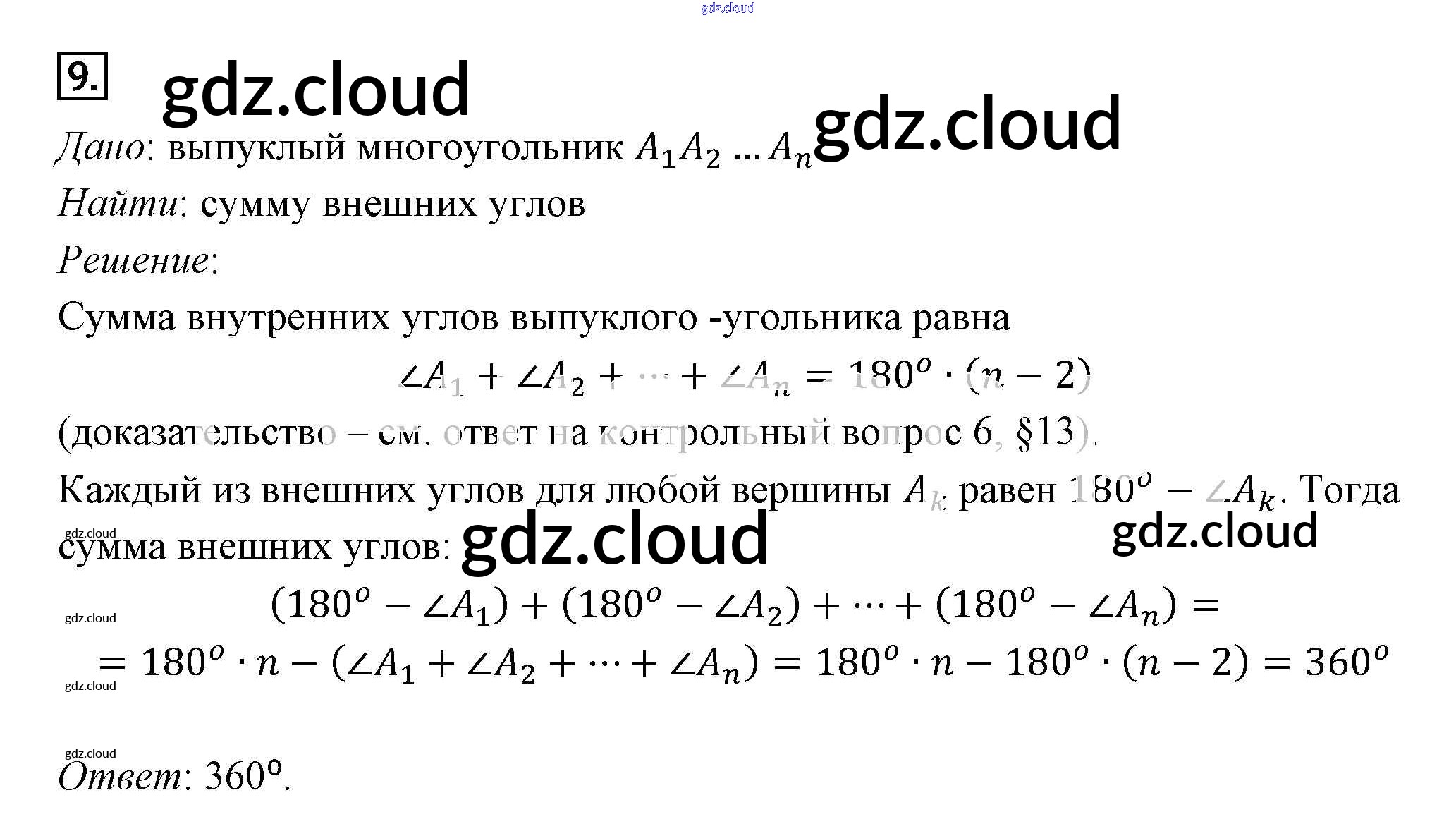 Ответ на задание 9 Учебник Геометрия за 7, 8, 9 (седьмой, восьмой, девятый) класс Погорелов 2014