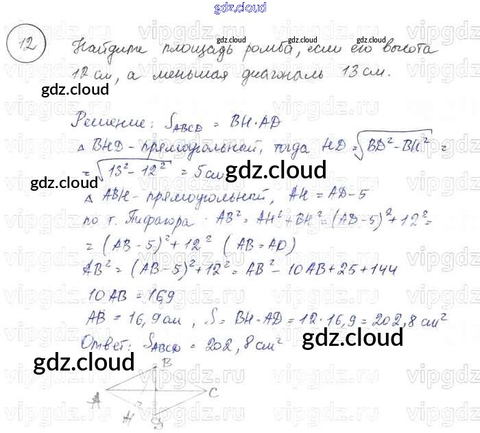 Ответ на задание 12 Учебник Геометрия за 7, 8, 9 (седьмой, восьмой, девятый) класс Погорелов 2014