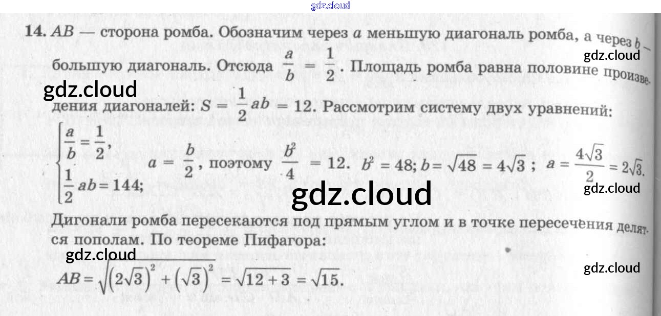 Ответ на задание 14 Учебник Геометрия за 7, 8, 9 (седьмой, восьмой, девятый) класс Погорелов 2014