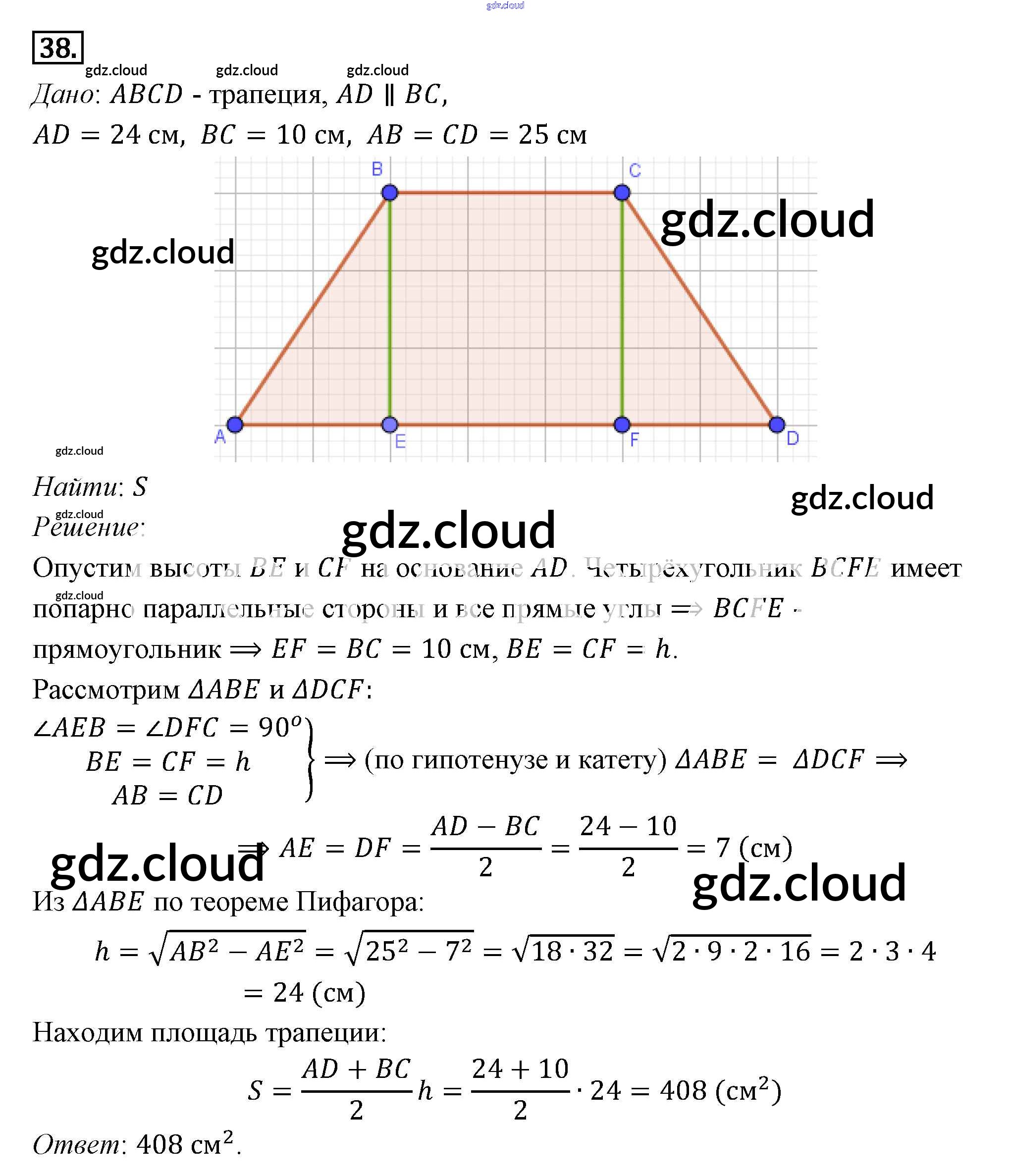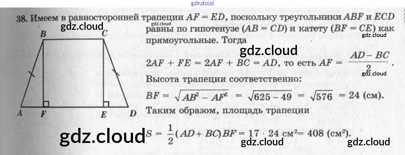 Ответ на задание 38 Учебник Геометрия за 7, 8, 9 (седьмой, восьмой, девятый) класс Погорелов 2014