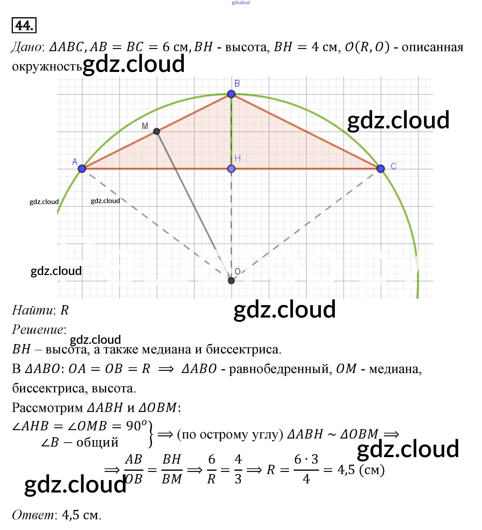 Ответ на задание 44 Учебник Геометрия за 7, 8, 9 (седьмой, восьмой, девятый) класс Погорелов 2014