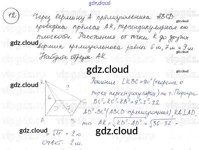 Ответ на задание 12 Учебник Геометрия за 7, 8, 9 (седьмой, восьмой, девятый) класс Погорелов 2014