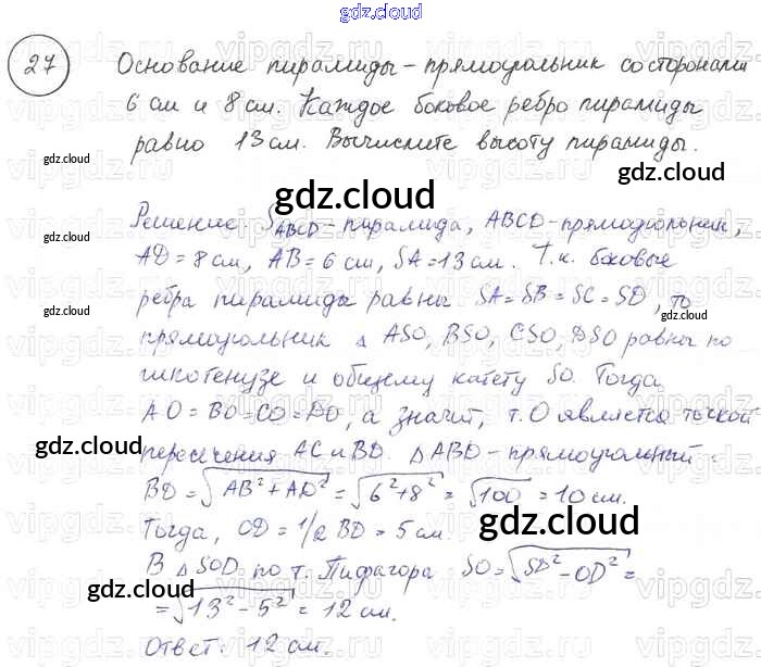 Ответ на задание 27 Учебник Геометрия за 7, 8, 9 (седьмой, восьмой, девятый) класс Погорелов 2014